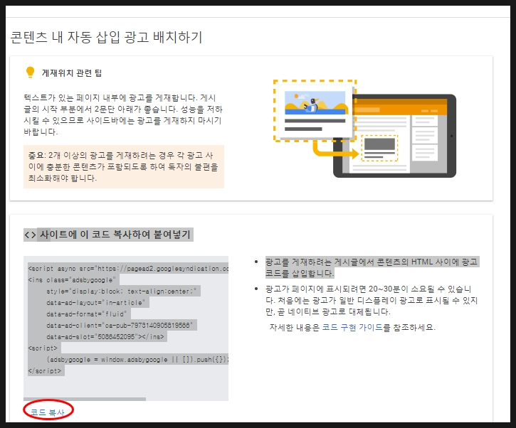 블로그에 붙여 넣기를 해야 광고가 생성되니 다소 번거롭기는 합니다.
