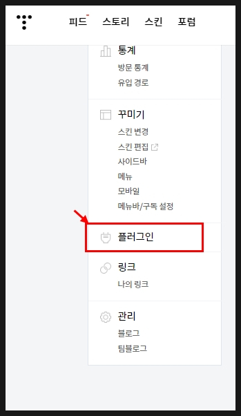 7. 티스토리 블로그 관리창으로 들어가서 플러그인을 클릭합니다.